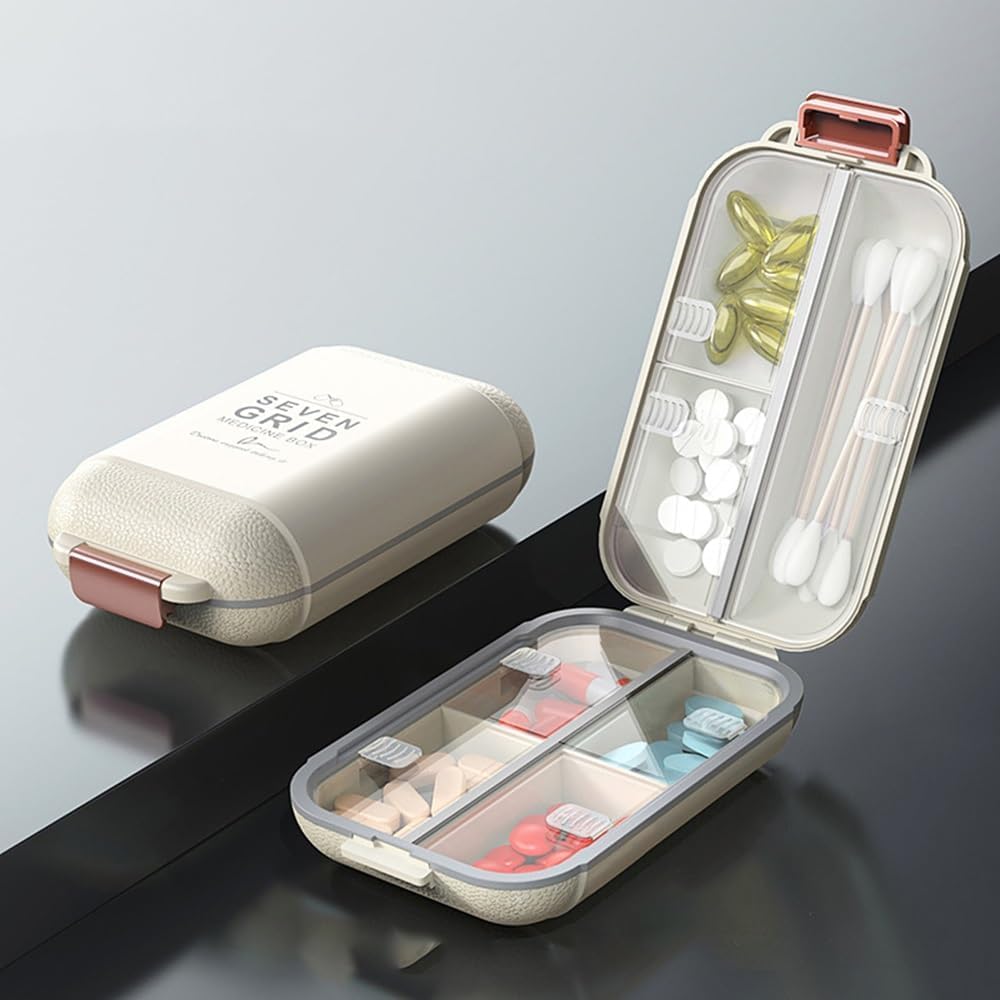 Portable Pill Organizer 7 Compartment Mini Pill Box Travel Medicine Storage Case Weekly Medication Dispenser for Vitamins Supplements White